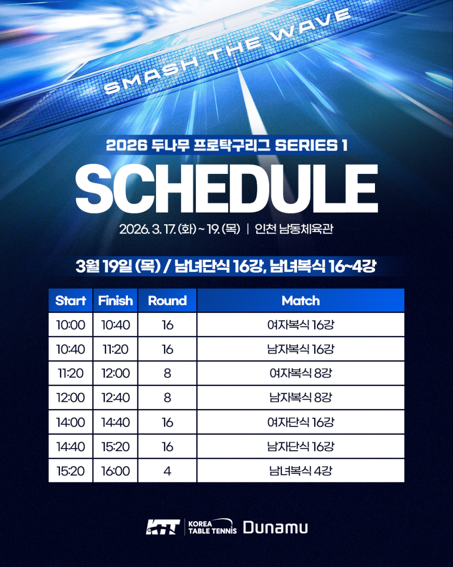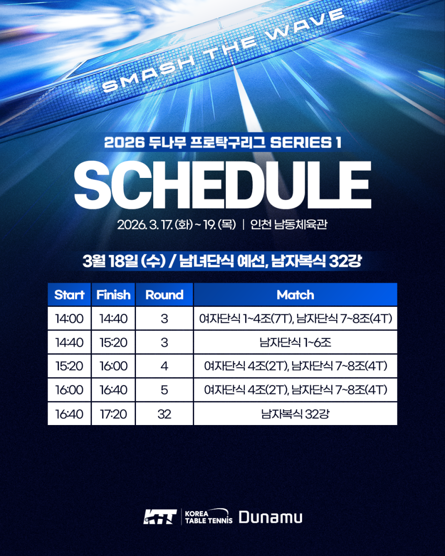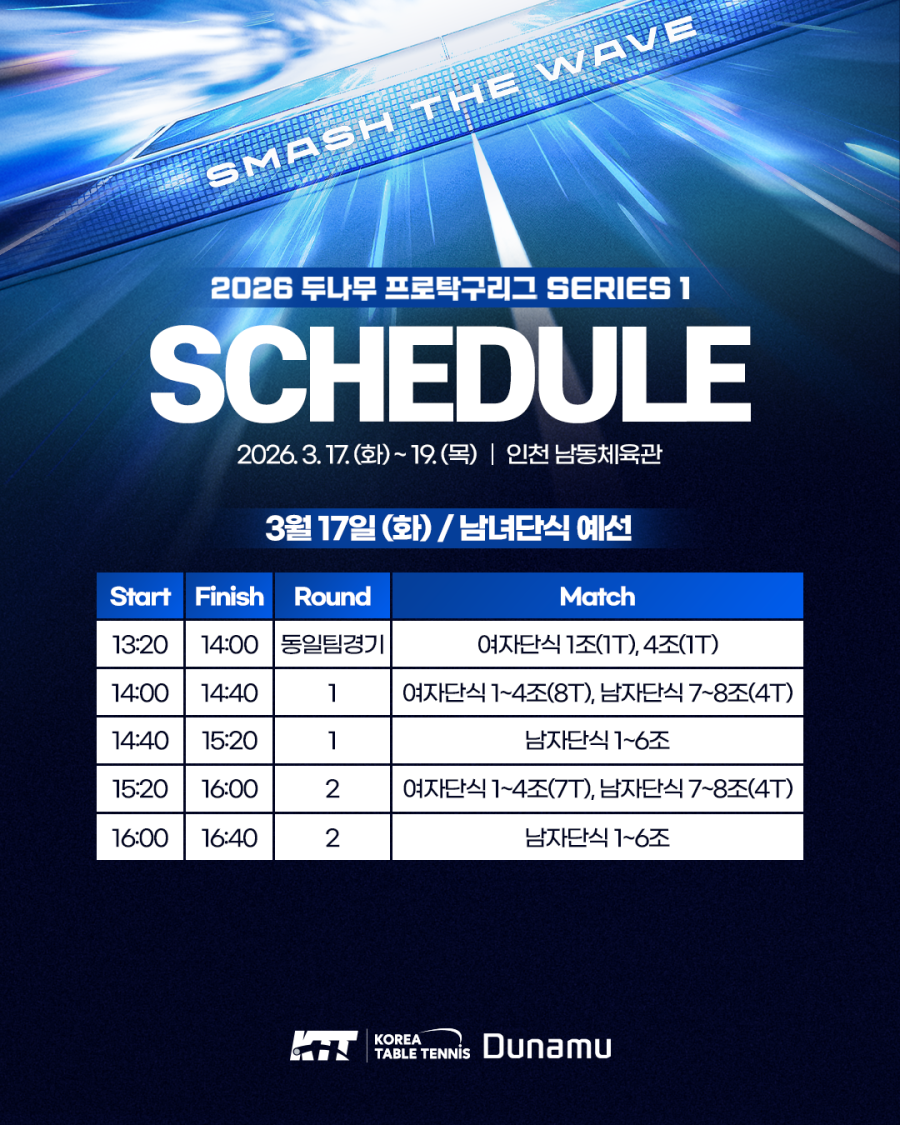 [경기일정] 2026 두나무 프로탁구리그 시리즈 1 예선 일정 안내