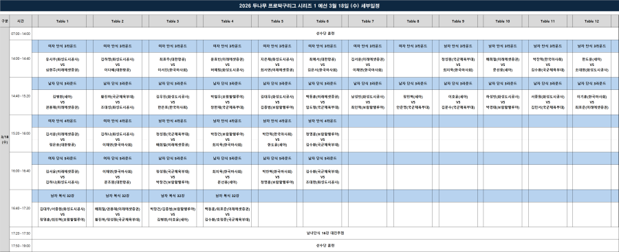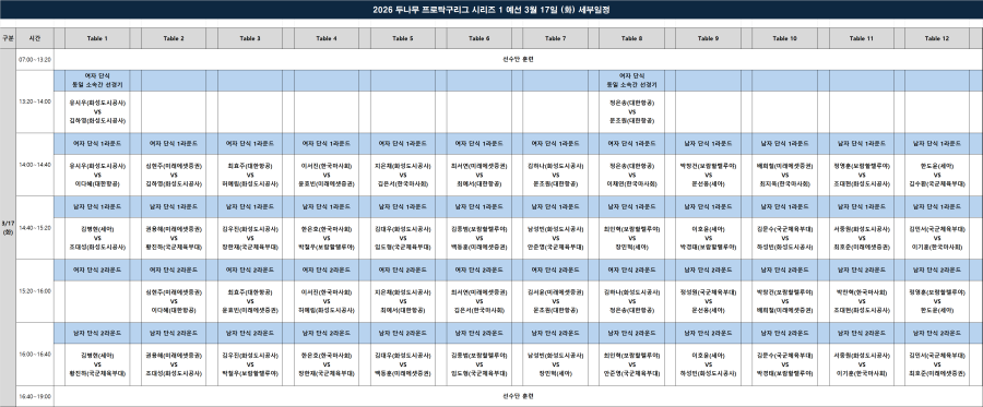 [세부대진] 2026 두나무 프로탁구리그 시리즈1 예선 세부 대진_업데이트본