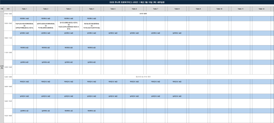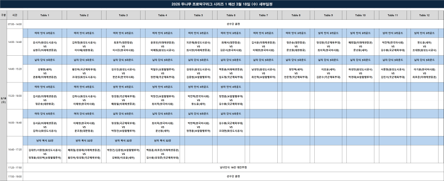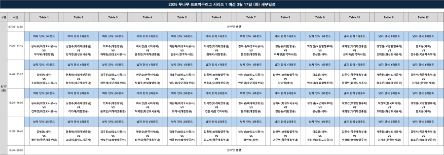 [세부대진] 2026 두나무 프로탁구리그 시리즈1 예선 세부 대진